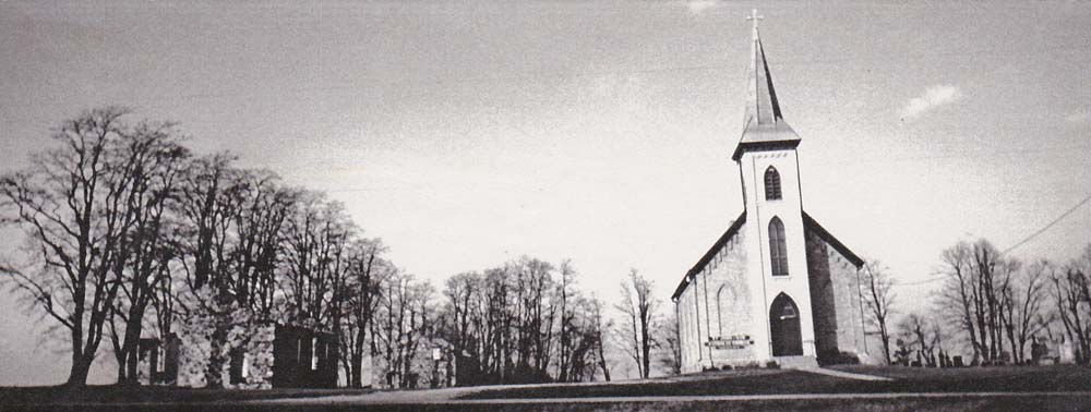 St. Peter's Church, built in 1855, was the first Catholic community in Farmington. In 1861, the church was replaced with a fieldstone structure. The apse is formed with a half-octagonal shape, unusually beautiful and difficult to create out of the irregularly-shaped fieldstones. Darker stones were used in a decorative manner to fashion the shape of a cross on the exterior front wall. Used for only a few years, the parish was discontinued in 1879. Still in existence next to the church is the fieldstone public school building, built in 1874 and used for fifty years. Listed on the National Register of Historic Places and is a Washington County Landmark.