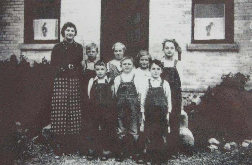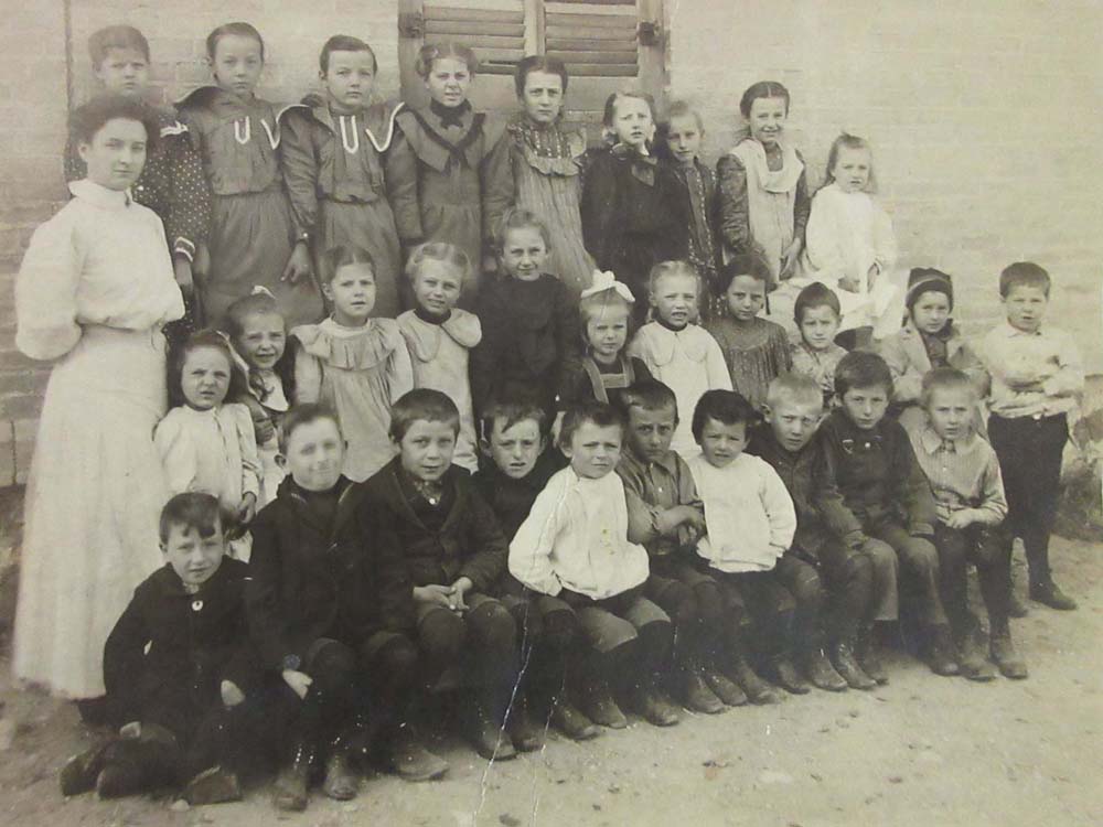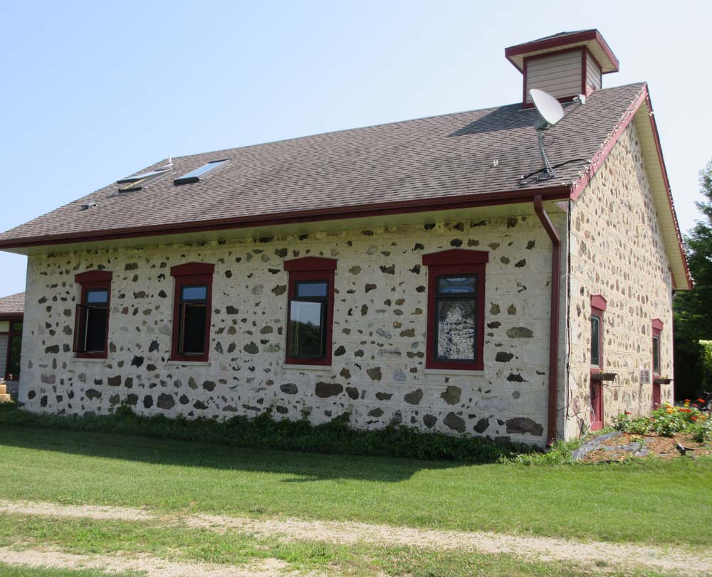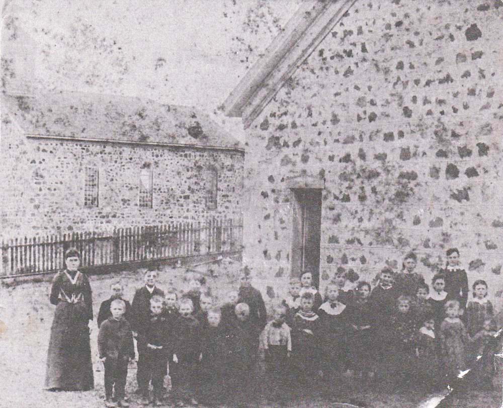 A one-room fieldstone school building was constructed the following year. Students brought drinking water from the Schwin/Schwinn home west of the church.